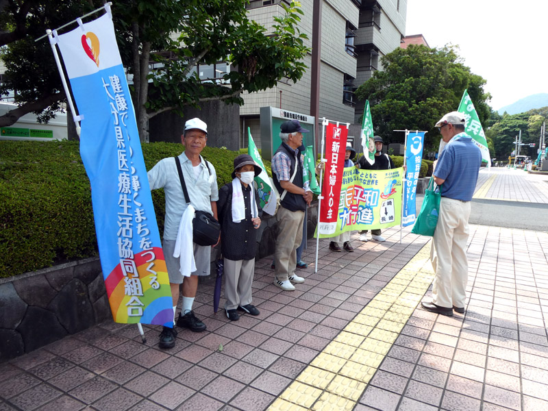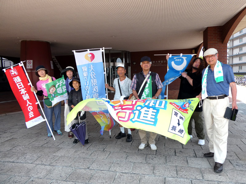 今年も平和行進が別府にやってきた、平和行進は7月7日・8日と二日間ににわたって東別府駅から別府大学駅まで別府市民に核兵器廃絶の訴えをアピールしながら毎年歩いているが、私は今回7日の東別府駅から市役所までは医療生活協同組合の会議のため参加出来ませんでしたが、8日の市役所から別府大学駅までのコースに参加してきました。 市役所10時出発のため、今参議院選挙の期日前投票が行われているので、集合時間より少し前に市役所に行き、期日前投票を済ませ、平和行進参加者と合流したが、本日の参加者は昨日の参加人数の半分以下と昨日の参加者が言っていたが、私も昨年までずっと参加してきた中で一番少ない人数のように感じた。参加人数は8名で、年齢は30代から90代と幅広かったが、30度を超える暑さのなか、みんな元気に最後まで市民に訴えながら更新することが出来ました。 因みに本日歩いた歩数は15,500歩でした。万歩計には私の歩幅60cmで登録しています。 |