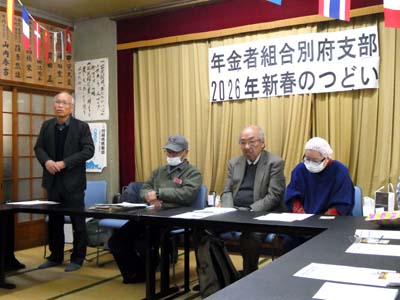 | 年金者組合別府支部の「新春のつどい」が1月18日上田の湯公民館で開催されました。会員23名が参加し、司会者の挨拶に続いて支部長の挨拶を受け、来賓として県本部の山本さんが、この一年年金者への政府の対応と目まぐるしく変わる政界の動きを交えて、丁寧な説明の挨拶がありました。 そのあと共産党市議と少し遅れて県議の挨拶があり、「つどい」の余興を始める前に若干の学習会「別府市内にある介護施設や老人ホーム」の施設案内について、美馬議員より説明を受け、施設の在り方について学びました。 乾杯のあと昼食を摂りながらの雑談し、本日のメインである「お楽しみ抽選会」のビンゴゲームで花を咲かせ、楽しい余韻を残しながら散会いたしました。 |