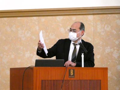 | 「原発は安全か」という演題で講演する佐賀県弁護士会会長の東島浩幸さん |