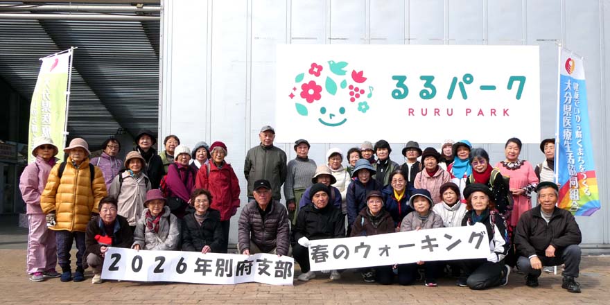 大分県医療生活協同組合別府支部が杵築市にある「大分県立るるパーク」で初春のウオーキングを企画したので参加してまいりました。 参加者は車に分散して35名以上の方が参加し、運営委員の方が本日のウオークについての説明と本部の方が生協での健康づくりについて話が行われたあと、支部の「健康づくり」担当者によるウオーク前の準備体操としてラジオ体操を行い、園内を一周する人、園内を散策する人等、それぞれ自分の足に合ったウオークを楽しむよう、またそれぞれが11半にはこの場所集合するよう伝え、自分に合った行動に出かけました。 私は一周コースに参加して園内を周っていると、春の息吹が伝わるのか木々の先には芽を膨らませている木もあれば、花を終わらせた木々に混じって白やピンクの花を咲かせている梅の木、大輪や小輪の赤い花を付けている椿園など、遊歩道の周りには心を躍らせる木々が沢山ありました。 るるパークは人造湖を中心に四季折々の花や木々が植えられ、人造湖にはブラックバスなどの魚が放流されているためか、今日も多くの釣り人が訪れており、竿を頻繁に動かし、また私たち以外の観光客も多く訪れて、これから園内の一角を薄紫一色に染める咲きはじめの「ネモフィラ」にカメラを向けていました。 それぞれ散会して園内を楽しんでいた参加者が戻ってくると、朝早くから弁当の用意をして下さった方から弁当とお茶が配布され、皆それぞれが暖かい陽射しが指すベンチで昼食休憩を摂り、昼食休憩が終わると運営委員の方がウオークの終了と、今後の予定として26日の木曜日に大畑公民館で「スクエアステップ」が行われるのでと、参加を呼びかけて散会いたしました。 |