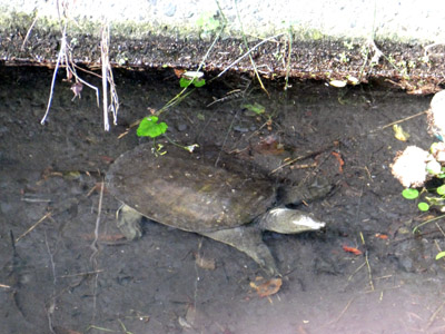 | 公園へ行くのに少し遠回りして境川を遡っているとスッポンが目を見つけた 北門からの入場、園内はすでに人出一杯 |