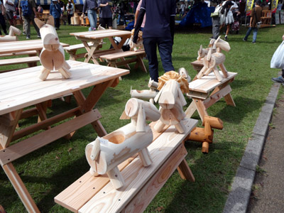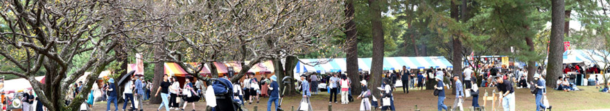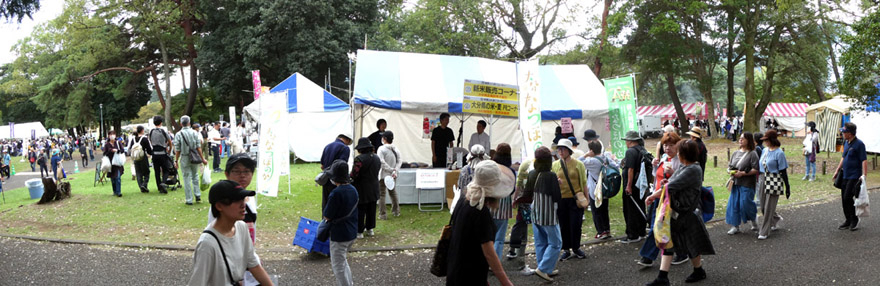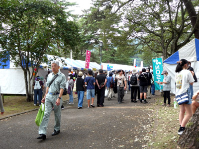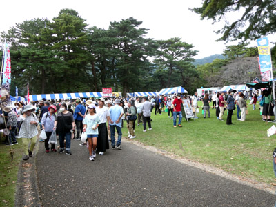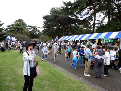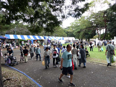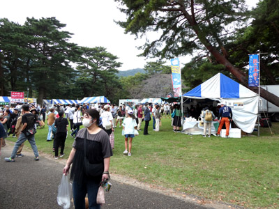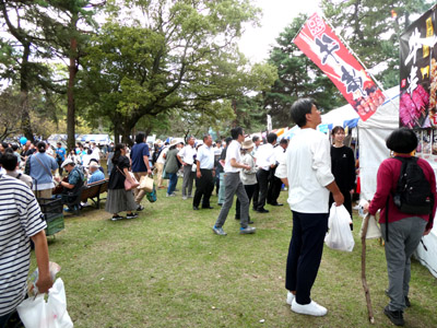 別府市は秋のこの時期、県内市町村から出展を求め、市町村特産の農産物や海産物、グルメを直産販売を別府公園で開催しています。 昨年は多用があって行くことが出来なかったが、今年久しぶりに行って見ると特産品の有名な所やグルメの有名な所は長い列をなして並び、そこを横切るにも一苦労するぐらいな人出でした。 |